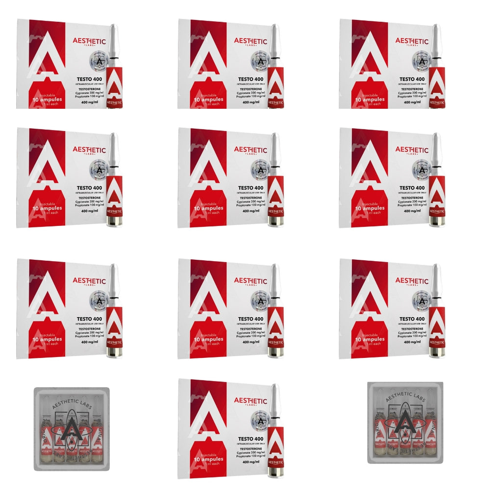 Este paquete mayoreo incluye 10 piezas de Testo 400 Aesthetic Labs, una testosterona de alta concentración diseñada para atletas avanzados que buscan potencia máxima, liberación prolongada, rendimiento continuo y ciclos de alto impacto con menor volumen aplicado.